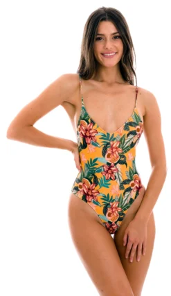 Orange & Black Tabbed Brazilian One-piece Swimsuit With Belly Cutout – Wild-orange Ivy Strap