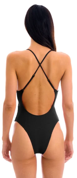 Description Black textured belly cutout Brazilian one-piece swimsuit – DOTS-BLACK IVY STRAP Rio de Sol